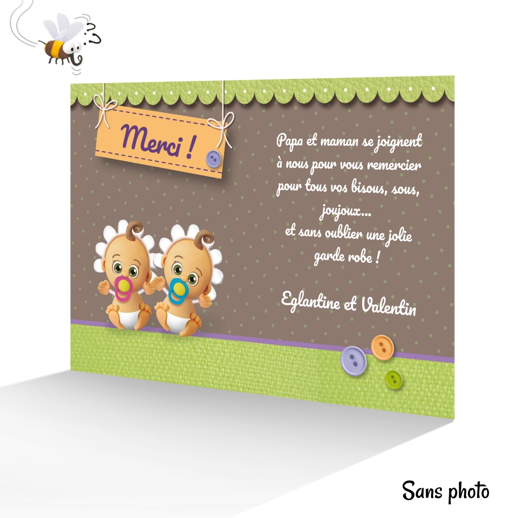 Ce modèle de carte de remerciement est disponible avec ou sans photo.
