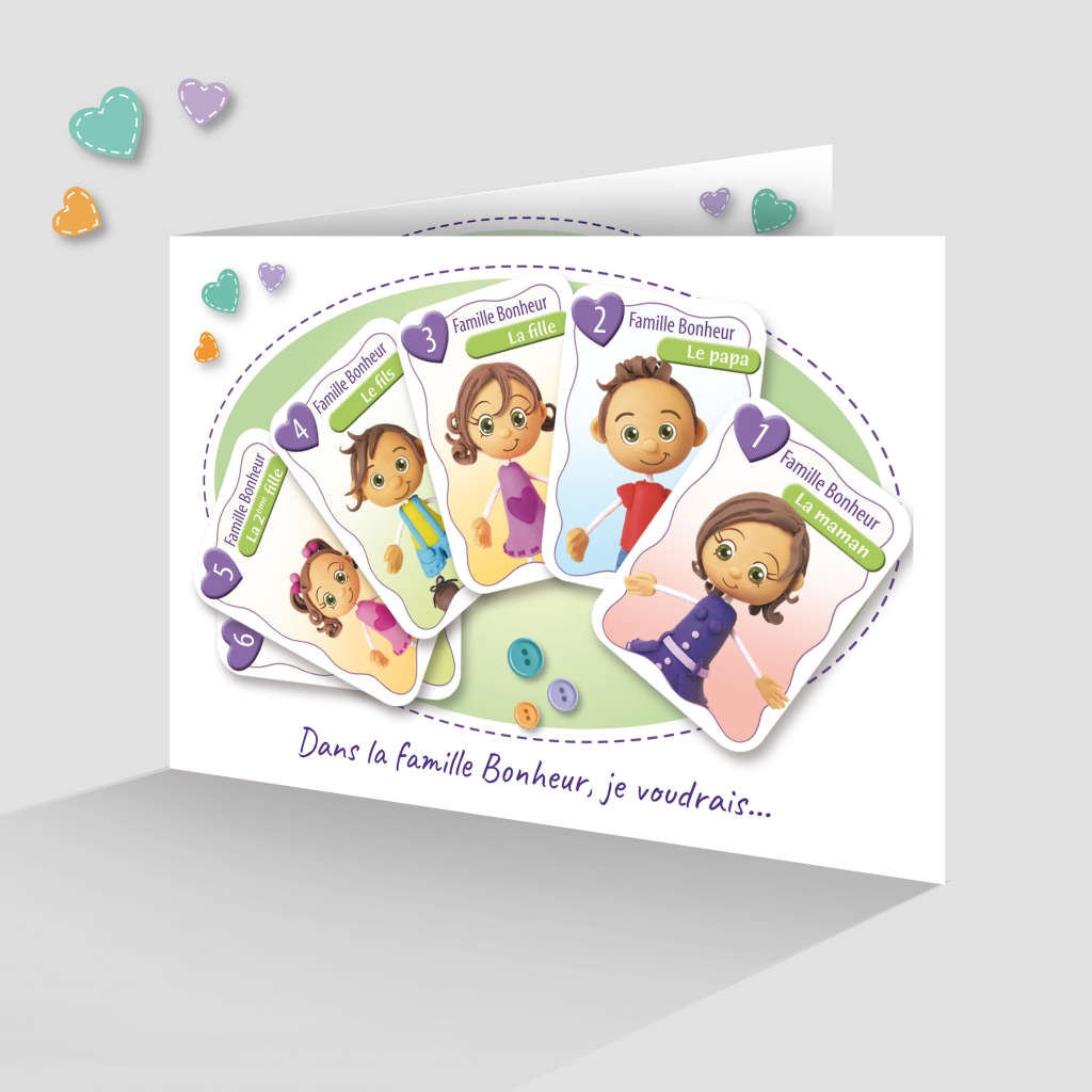 Quelle jolie petite famille vous avez là : une 1ère fille, un fils, une 2ème fille, et sans oublier le petit dernier ou la petite dernière ! Quelle joie pour tout le monde de se retrouver sur le faire-part de naissance avec le jeu des 7 familles, de façon humoristique avec des petits personnages en pâte à modeler ! Le tout sur un fond vert tendre, pour souligner la tendresse que toute la famille apporte à votre petit bout de chou. Ce joli faire part de naissance est idéal pour un 4ème enfant.