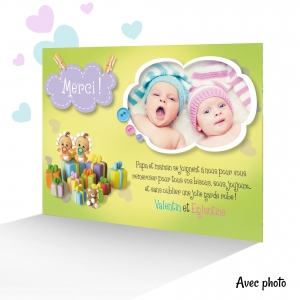 Nous pouvons modifier les modèles de votre faire-part de naissance ou de votre carte de remerciement (couleurs, cadre photo, ajout / suppression de personnages...), contactez-nous !