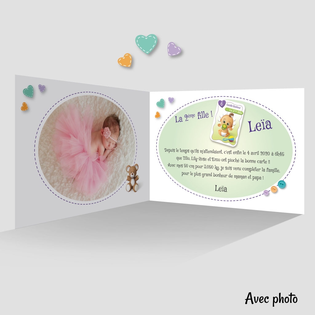 Faire part Naissance Fille Spécial Famille Nombreuse 4 enfants